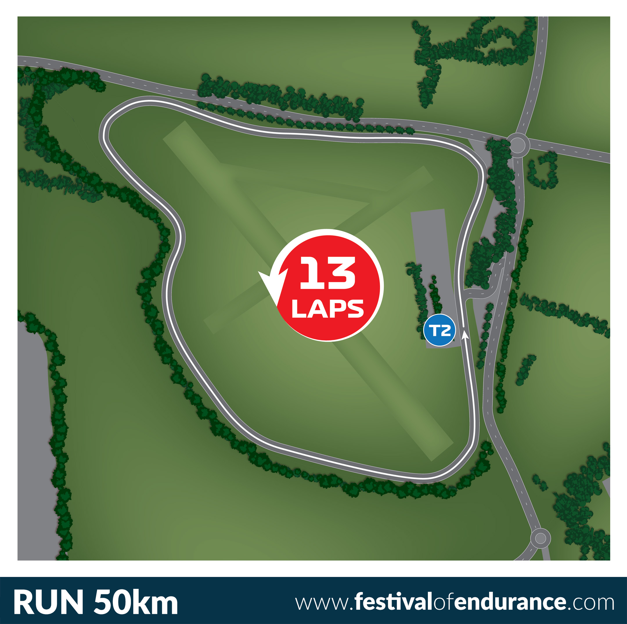 The run will be 13 laps of 3.85km on smooth tarmac around Goodwood Motor Circuit. After each 3.85km lap, you will have acccess to your pit lane box, with an additional aid stations every 1.9km. This is a great PB course and a perfect opportunity to get a fast time over the 50km distance.