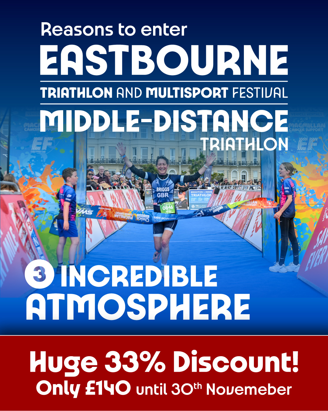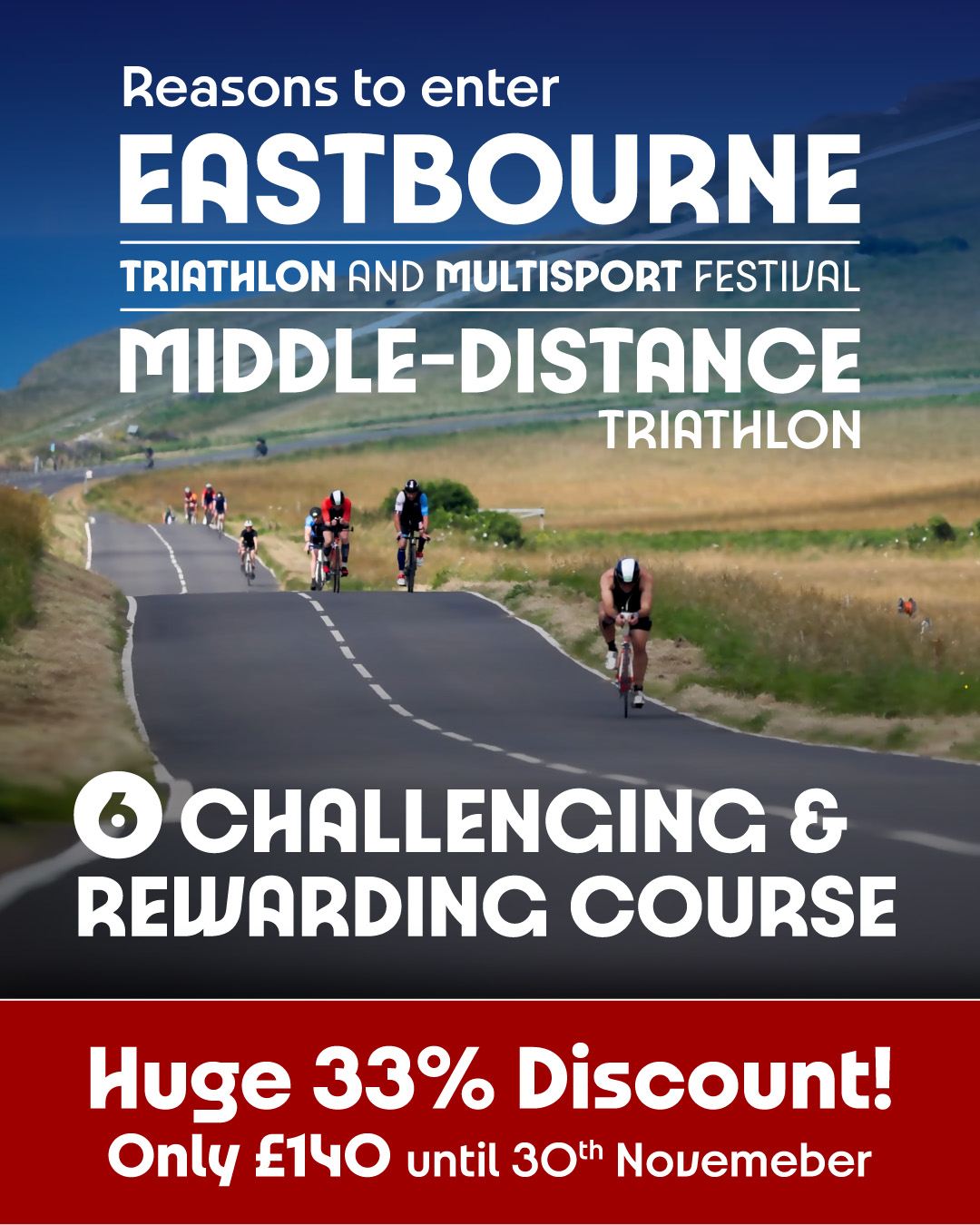 Eastbourne Triathlon & Multisport Festival is one of the most well established and highly respected triathlon events in the country. Our middle-distance race features a sea swim against the backdrop of Eastbourne’s historic pier, a multi-lap bike course on fully closed roads over the iconic Beachy Head Road, and a fast, flat run on the seafront promenade, culminating in an unforgettable blue carpet finish line experience. It’s a course that offers both challenge and reward, all set in a stunning location.