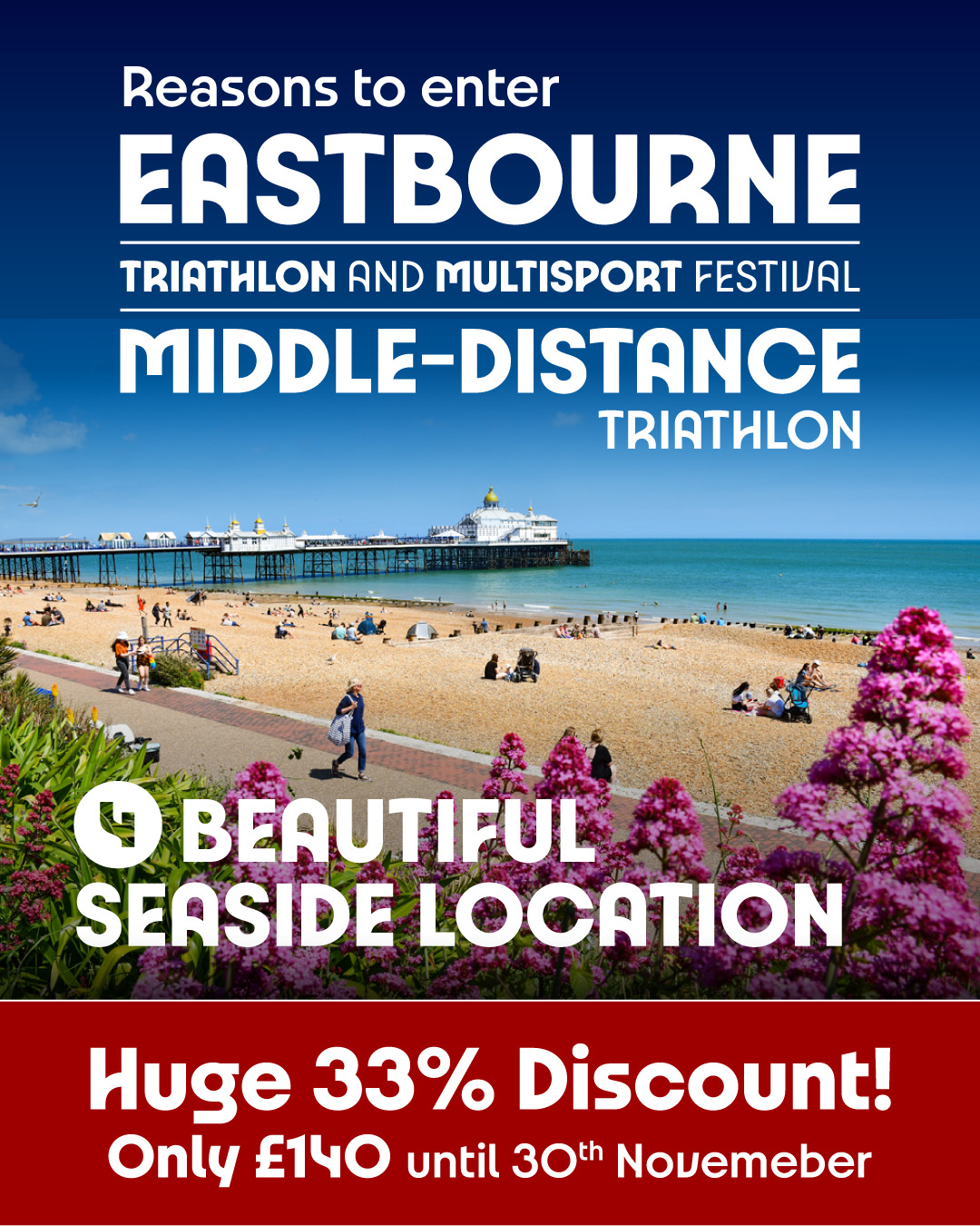 Eastbourne Triathlon & Multisport Festival is one of the most well established and highly respected triathlon events in the country. Our middle-distance race features a sea swim against the backdrop of Eastbourne’s historic pier, a multi-lap bike course on fully closed roads over the iconic Beachy Head Road, and a fast, flat run on the seafront promenade, culminating in an unforgettable blue carpet finish line experience. It’s a course that offers both challenge and reward, all set in a stunning location.